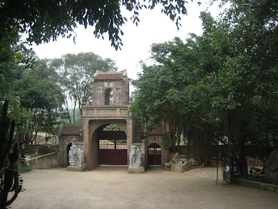 Hãy nhìn đi! Một cái cổng bằng đất thật tuyệt. Không biết nó đặc trưng cho địa phương nào. Chắc phải là vùng có đất tổ ong, một vùng ít có thói quen rào dậu bằng tre nứa? Hình dáng cái cổng thật diệu nghệ, bên trên cuốn tròn, y như cổng tò vò trong kiến trúc của Pháp. Trụ cột to, dầy, bề thế, hai bên có các ô chữ nhật lõm vào để trang trí, còn cánh cổng lại làm bằng tre, mỏng nhẹ. Tuy cổng bề thế nhưng hàng rào lại không cao, lại còn gịật cấp thấp dần. Chứng tỏ chủ nhân chỉ làm cổng và hàng rào cho đẹp, chứ không phải để chống trộm. Cả hai con chó đá canh hai bên cũng để cho đẹp thôi. Bạn có thấy ở đâu một cái cổng tuyệt như vậy? Ai dám bảo nông dân Việt Nam không khéo tay và không có óc thẩm mỹ?